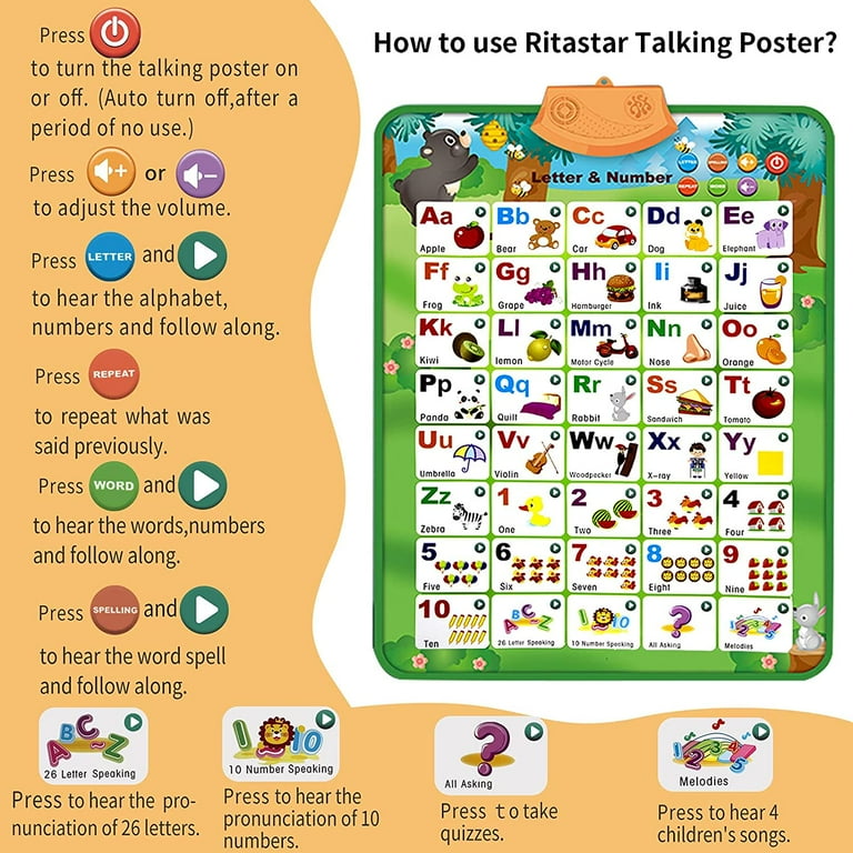 Doingart Interactive Alphabet Wall Chart Talking Abc 123s Music Poster Word Spelling Preschool Learning Toys For Toddler Kids Educational Toys Gifts For Christmas Holiday Birthday Walmart Com